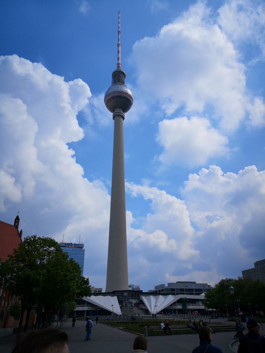 Wieża została wybudowana w latach 1965-1969 r. Ma wysokość 368 metrów i jest najwyższym budynkiem w Niemczech oraz czwartym co do wielkości wolnostojącym obiektem w Europie. Oprócz swojej głównej funkcji, jako miejsca lokalizacji kilku nadajników stacji radiowych i telewizyjnych, budynek ten służy jako wieża widokowa z piętrem widokowym, barem na wysokości 203 metrów i restauracją obrotową (obrót o 360 stopni trwa 30min.). Po zwiedzeniu Berlińskiej Wieży Telewizyjnej, grupa udała się na Alexanderplatz gdzie znajduje się Zegar Światowy Urania wybudowany w 1969 roku. Główną część zegara stanowi dwudziestoczterobok, który obraca się na słupie. Każda ze stron tego wieloboku odpowiada jednej z 24 stref czasowych świata. Powyżej i poniżej oznaczeń godzin, na aluminiowej obudowie, widnieją nazwy miast, znajdujących się w odpowiednich strefach czasowych. Ponad zegarem góruje model naszego układu słonecznego. Jego planety okrążają słońce po swoich metalowych orbitach raz na minutę. Powierzchnia przebudowanego „socjalistycznego” placu była ponad cztery razy większa niż przed wojną (80 000 m² wobec 18 000 m²).