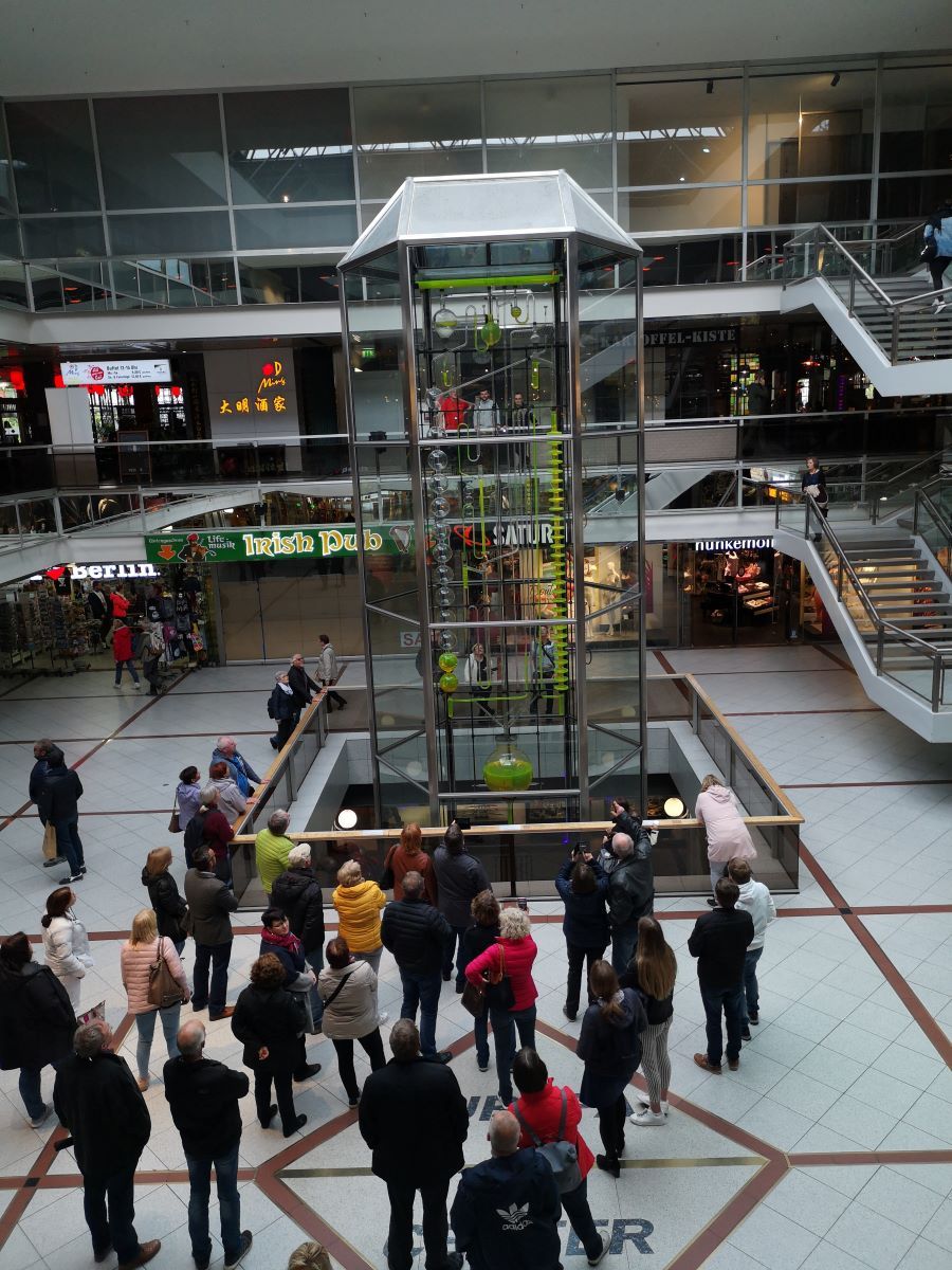 Kolejnym ciekawy punktem wycieczki był zegar wodny odmierzający czas, znajdujący w centrum handlowym Europa-Center. Jego działanie opiera się o regularny i stały wypływ wody ze zbiornika zwykle przez niewielki otwór. Kontrola dokładności wypływu wody w tego typu urządzeniach jest dość trudna, dlatego zegary wodne nigdy nie osiągnęły dużej precyzji. Zegary wodne były jednymi z pierwszych sposobów pomiaru upływu czasu, które nie były zależne od obserwacji astronomicznych. Jeden z najstarszych zegarów tego typu został znaleziony w grobowcu faraona Amenhotepa I, co świadczy, że on używany od około roku 1500 p.n.e.