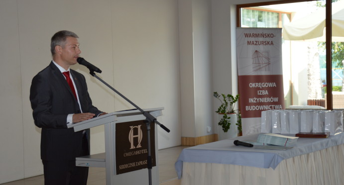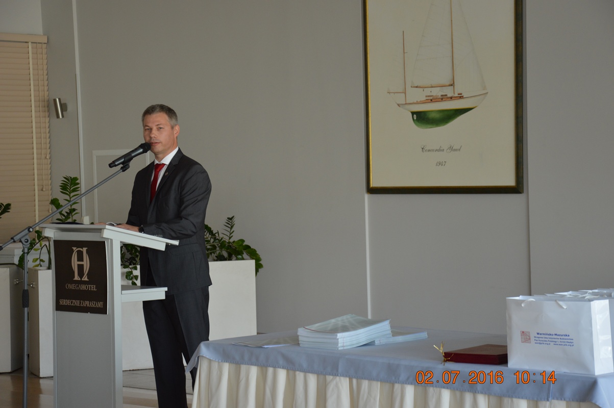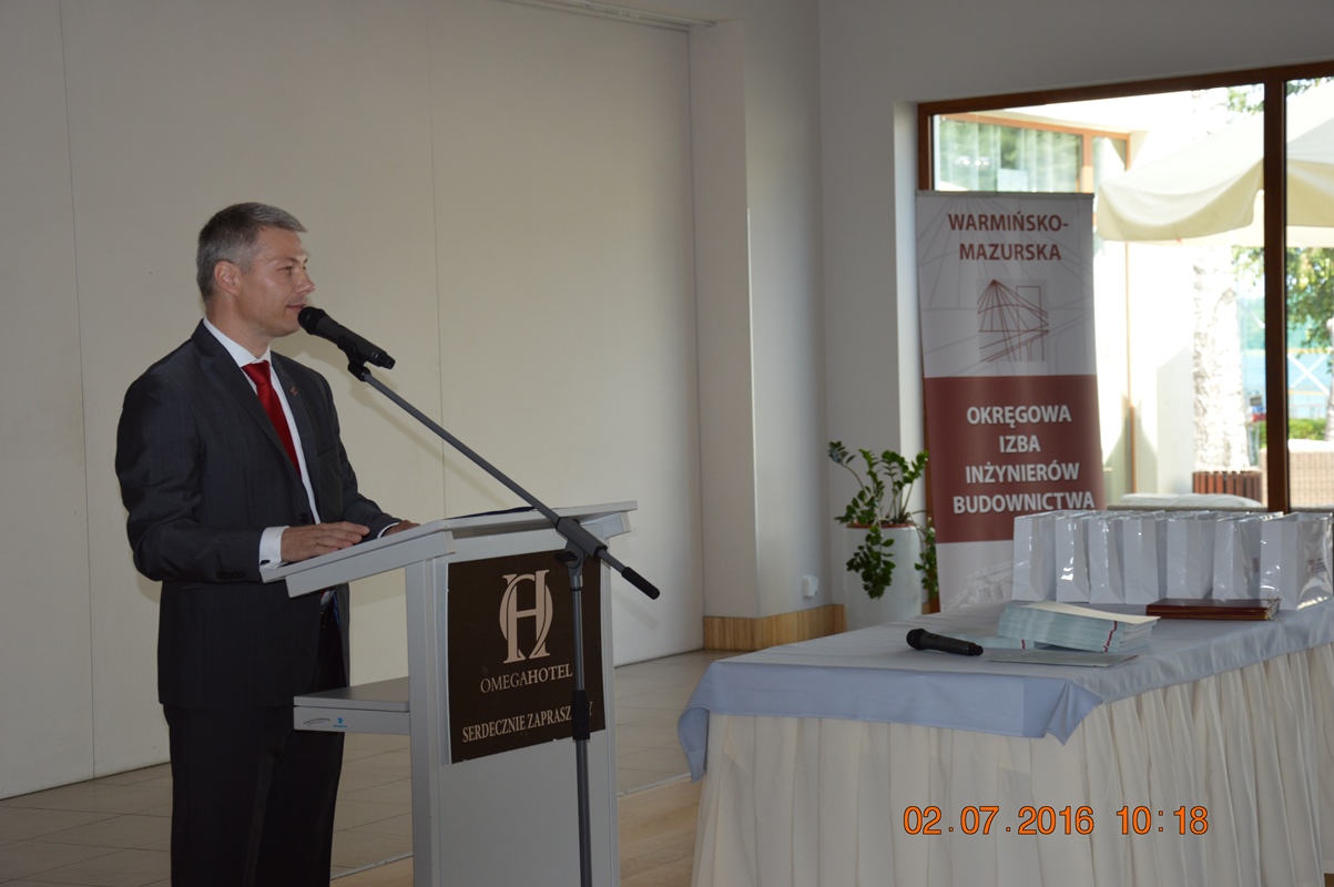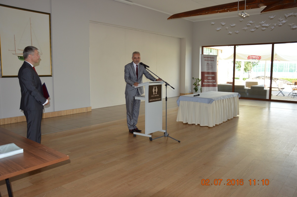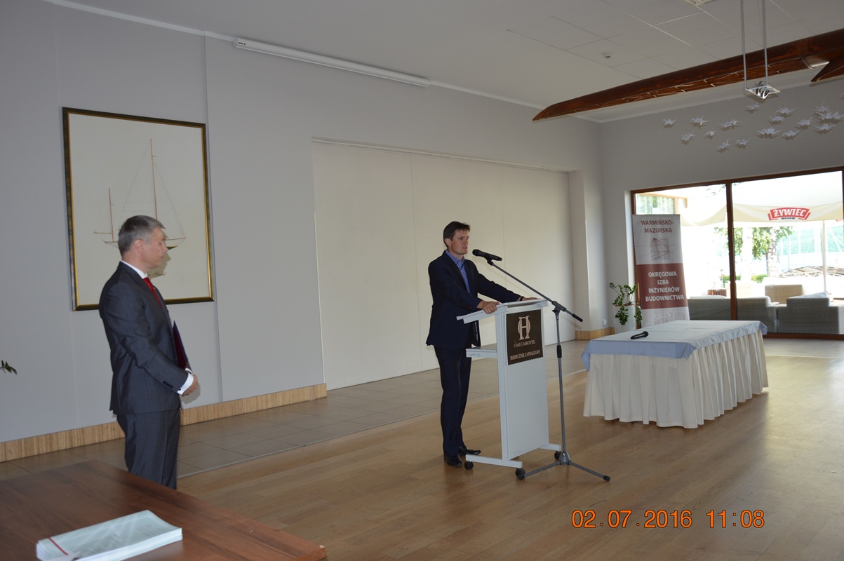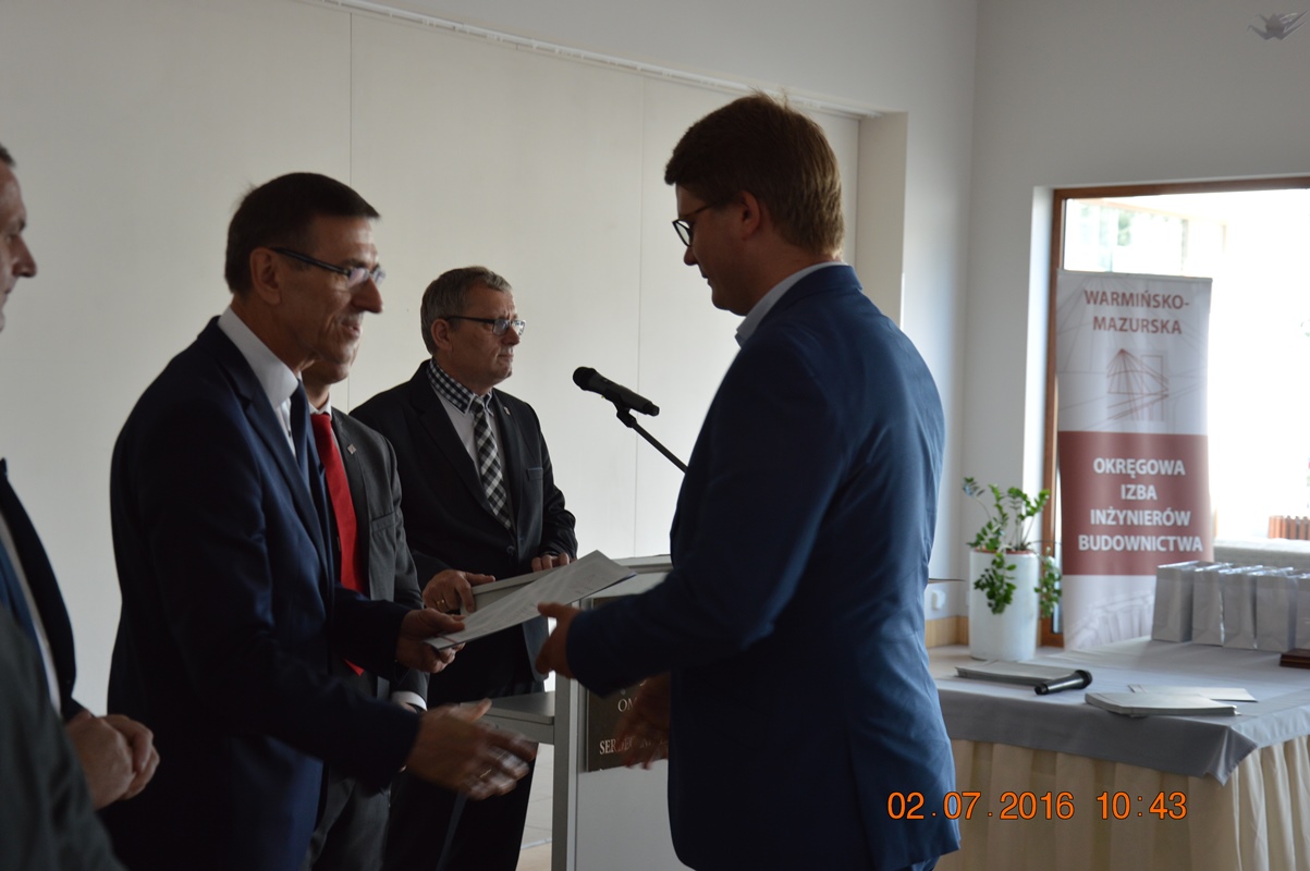 Uroczyste wręczenie decyzji odbyło się w dniu 02.07.2016 r. w sali konferencyjnej Hotelu Omega w Olsztynie. Naszymi gośćmi byli: Poseł na Sejm RP Mirosław Pampuch, Prezydent Olsztyna Piotr Grzymowicz, Warmińsko – Mazurski Inspektor Nadzoru Budowlanego Maciej Kotarski, Prodziekan ds. Budownictwa Wydziału Geodezji, Inżynierii Przestrzennej i Budownictwa UWM w Olsztynie dr inż. Jacek Zabielski, Dziekan Wydziału Nauk o Środowisku UWM w Olsztynie prof. dr hab. inż. Mirosław Krzemieniewski, Dyrektor Instytutu Politechnicznego Państwowej Wyższej Szkoły Zawodowej w Elblągu dc. dr inż. Jarosław Niedojadło, Dyrektor Centrum Szkoleń Budowlanych Bogusław Tański, członkowie Rady W-MOIIB oraz członkowie Okręgowej Komisji Kwalifikacyjnej W-MOIIB. Osoby, które uzyskały bardzo wysokie wyniki na egzaminie zostały nagrodzone pamiątkowymi dyplomami i „izbowymi” upominkami.