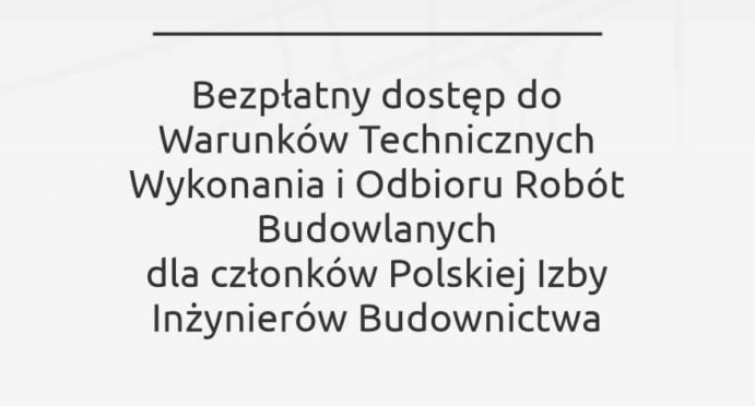 Członkowie Polskiej Izby Inżynierów Budownictwa otrzymali bezpłatny dostęp do Warunków Technicznych Wykonania i Odbioru Robót Budowlanych przygotowanych przez Instytut Techniki Budowlanej.