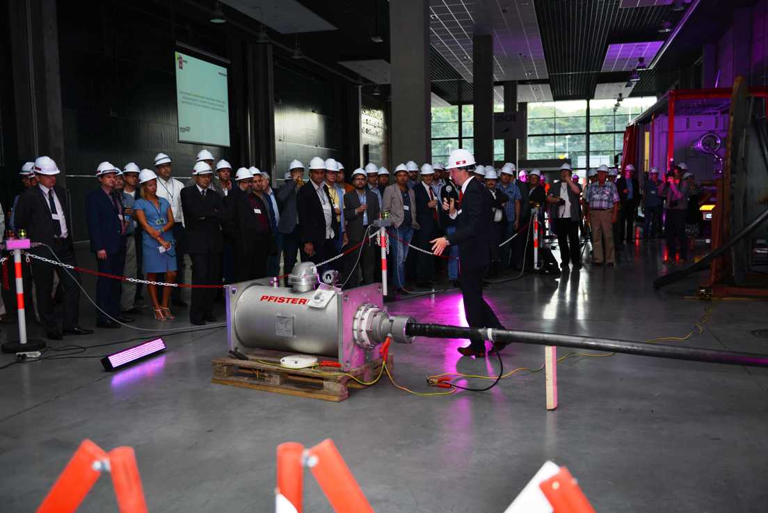 Druga część obrad odbyła się na terenie Hali EXPO w Ostródzie, gdzie w specjalnie przygotowanej hali była zainstalowana: aparatura pomiarowa wraz z mufą 220kV Pfisterera, kablem WN oraz laboratorium zamontowane na samochodzie do badań odbiorczych metodą rezonansu o zmiennej częstotliwości. O budowie i sprawach eksploatacyjnych osprzętu i kabli 110 kV i 220 kV opowiedział przedstawiciel producenta Piotr Matczak. Opis próby napięciowej oraz jej realizację przeprowadzili: Jarosław Parciak i Wiktor Wiśniewski wraz z pracownikami laboratorium. Zebrani uczestniczyli w wykonaniu próby napięciowej głowicy kablowej probierczym systemem rezonansowym WRV 83/260 T. Próba polegała na wygenerowaniu napięcia o wartości 216 kV i odpowiedniej częstotliwości rezonansowej oraz pomiarze wyładowań niezupełnych. Po wykonaniu próby uczestnicy zostali zapoznani ze szczegółową analizą otrzymanych wyników podczas tej próby.