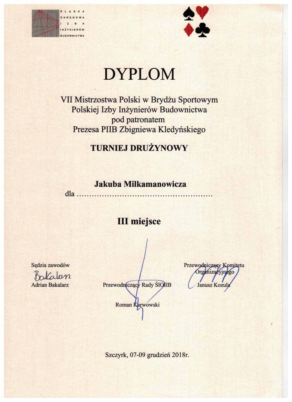 W dniach 7-9.12.2018r. po raz VII odbyły się Mistrzostwa PIIB w Brydżu Sportowym. W Mistrzostwach udział wzięło 51 osób z 8 Izb Okręgowych.
