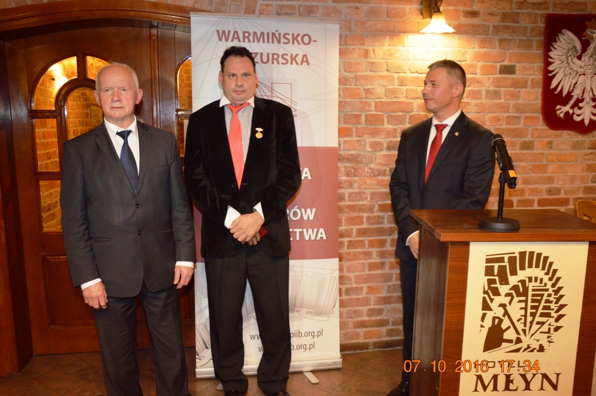 Wręczenia Złotych i Srebrnej Odznak PIIB dokonali: Dyrektor Elbląskiego Biura Regionalnego Urzędu Marszałkowskiego Pani Grażyna Kluge, Zastępca Prezydenta Olsztyna Pani Halina Zaborowska – Boruch i Przewodniczący Rady W-MOIIB Pan Mariusz Dobrzeniecki.