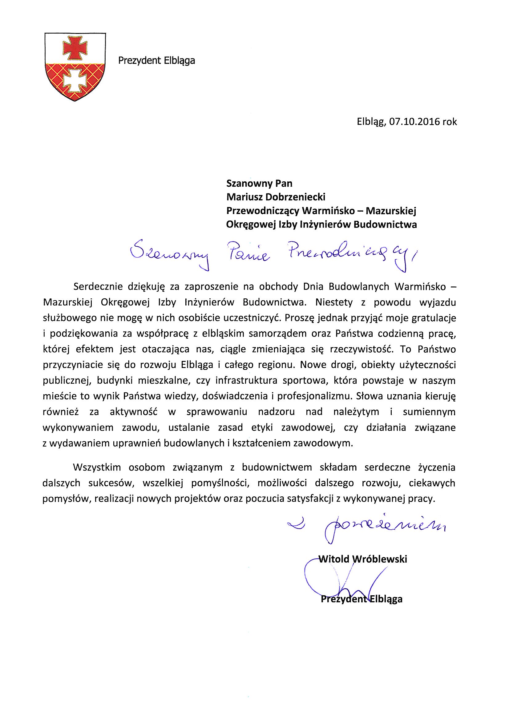 - Dariusz Urbański – Przewodniczący PZITB w Elblągu