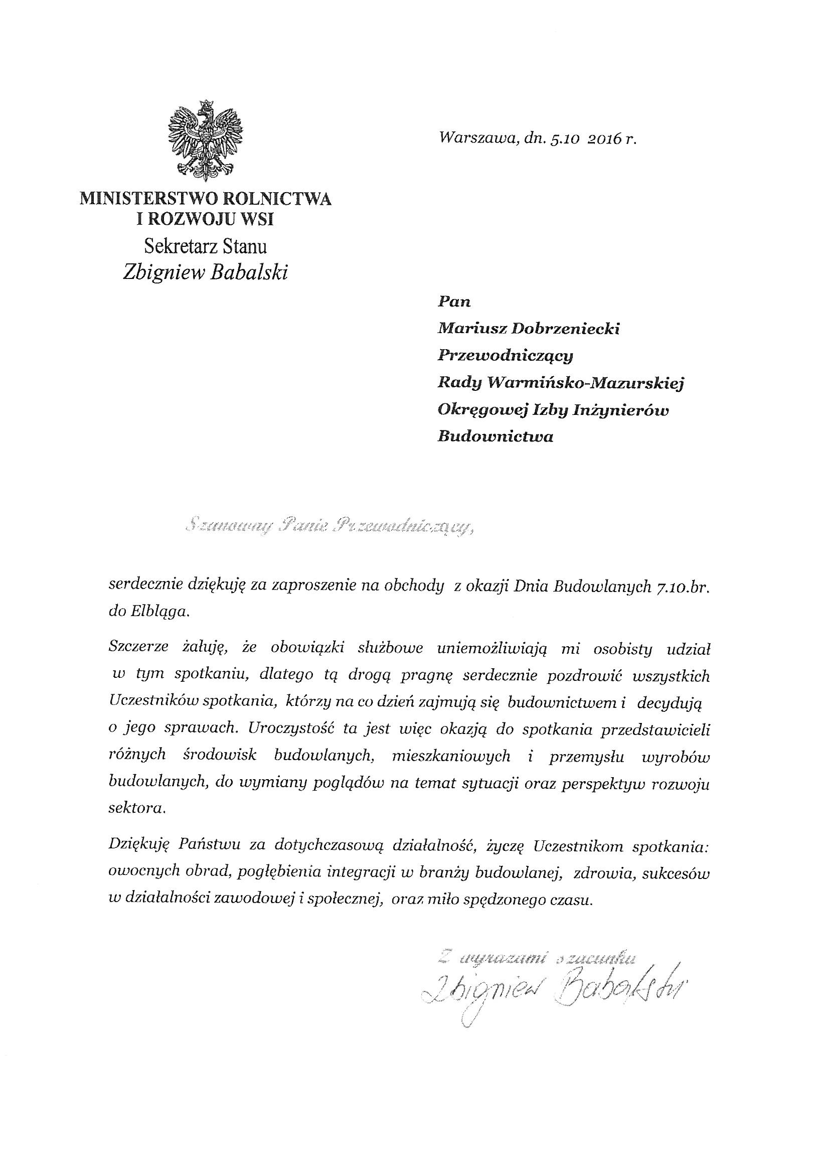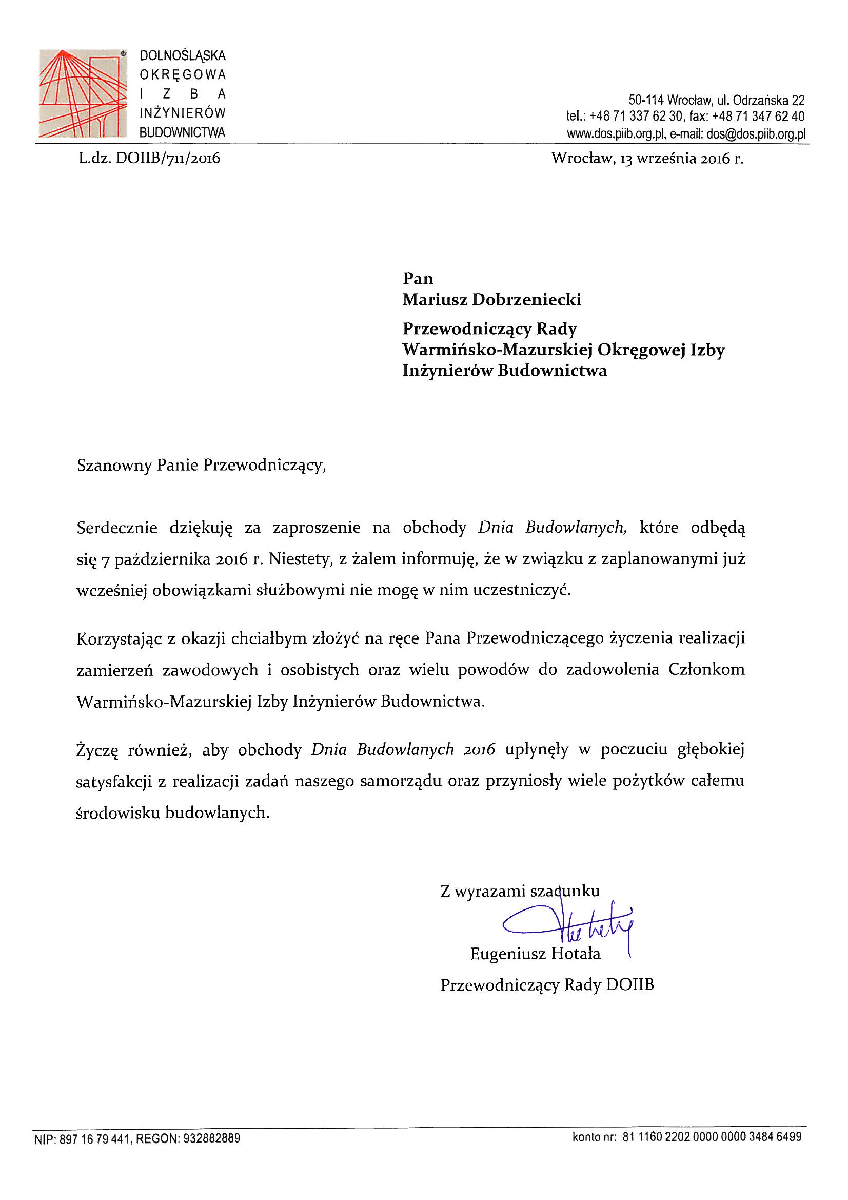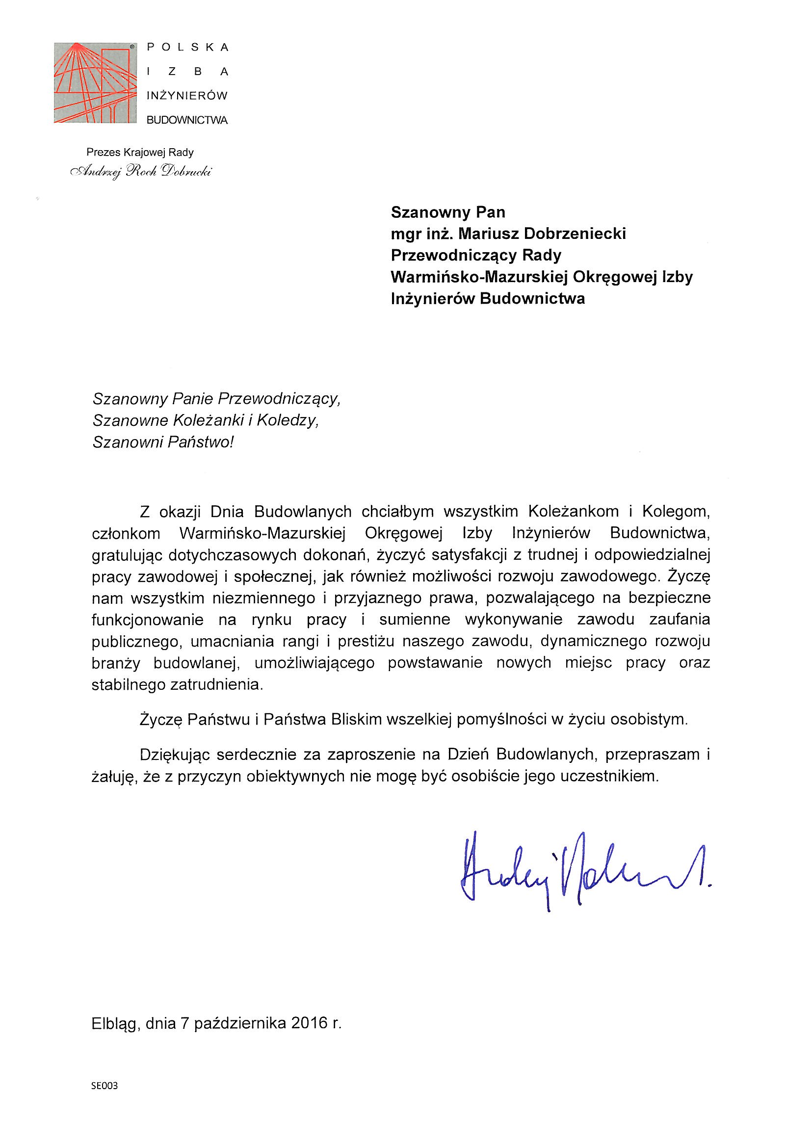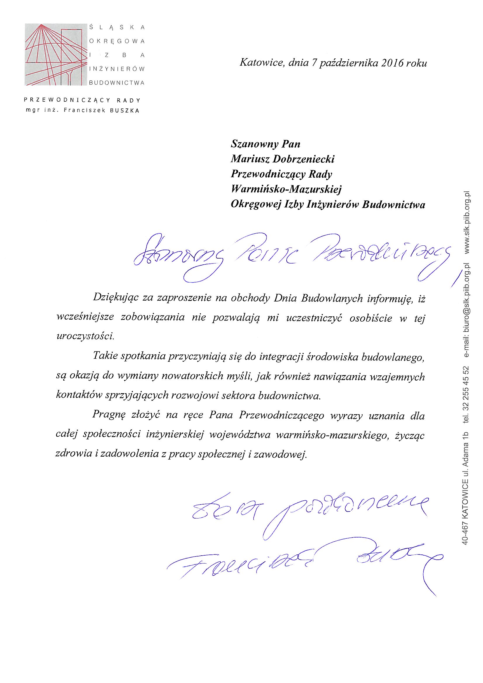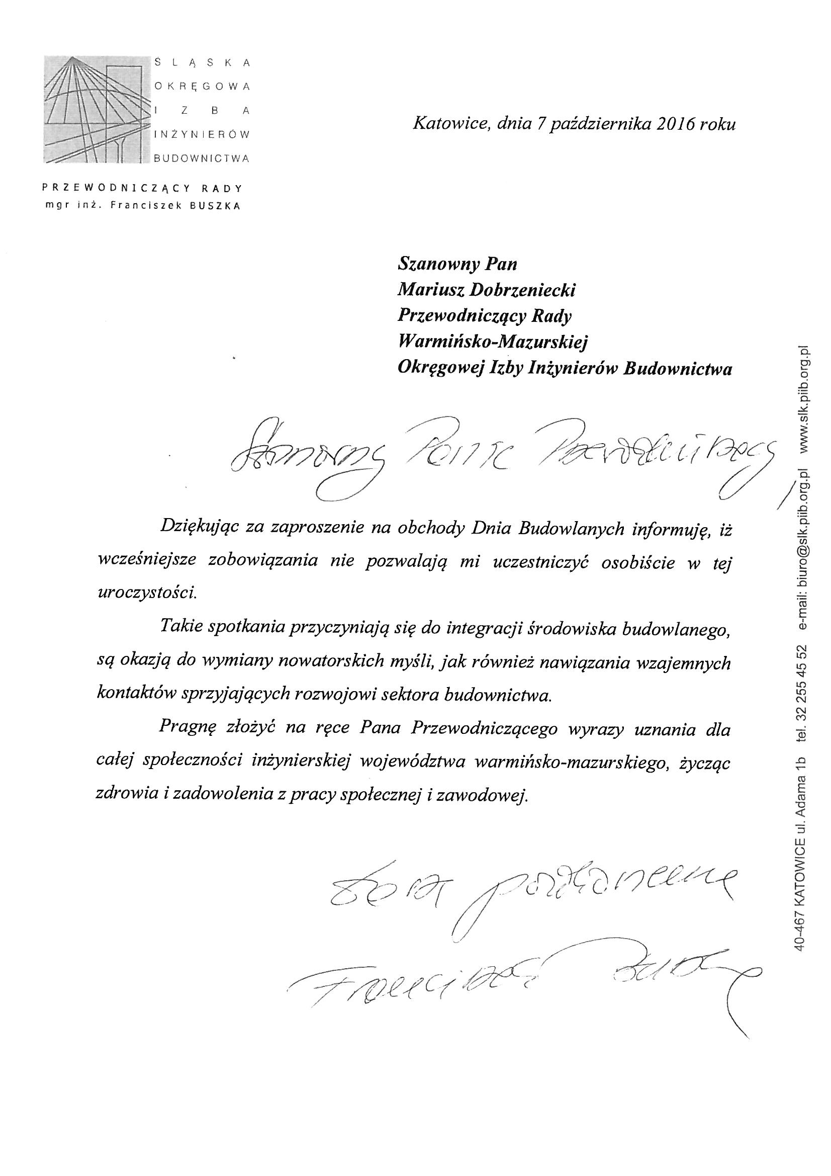 - Mieczysław Grodzki – Przewodniczący Rady Mazowieckiej Okręgowej Izby Inżynierów Budownictwa