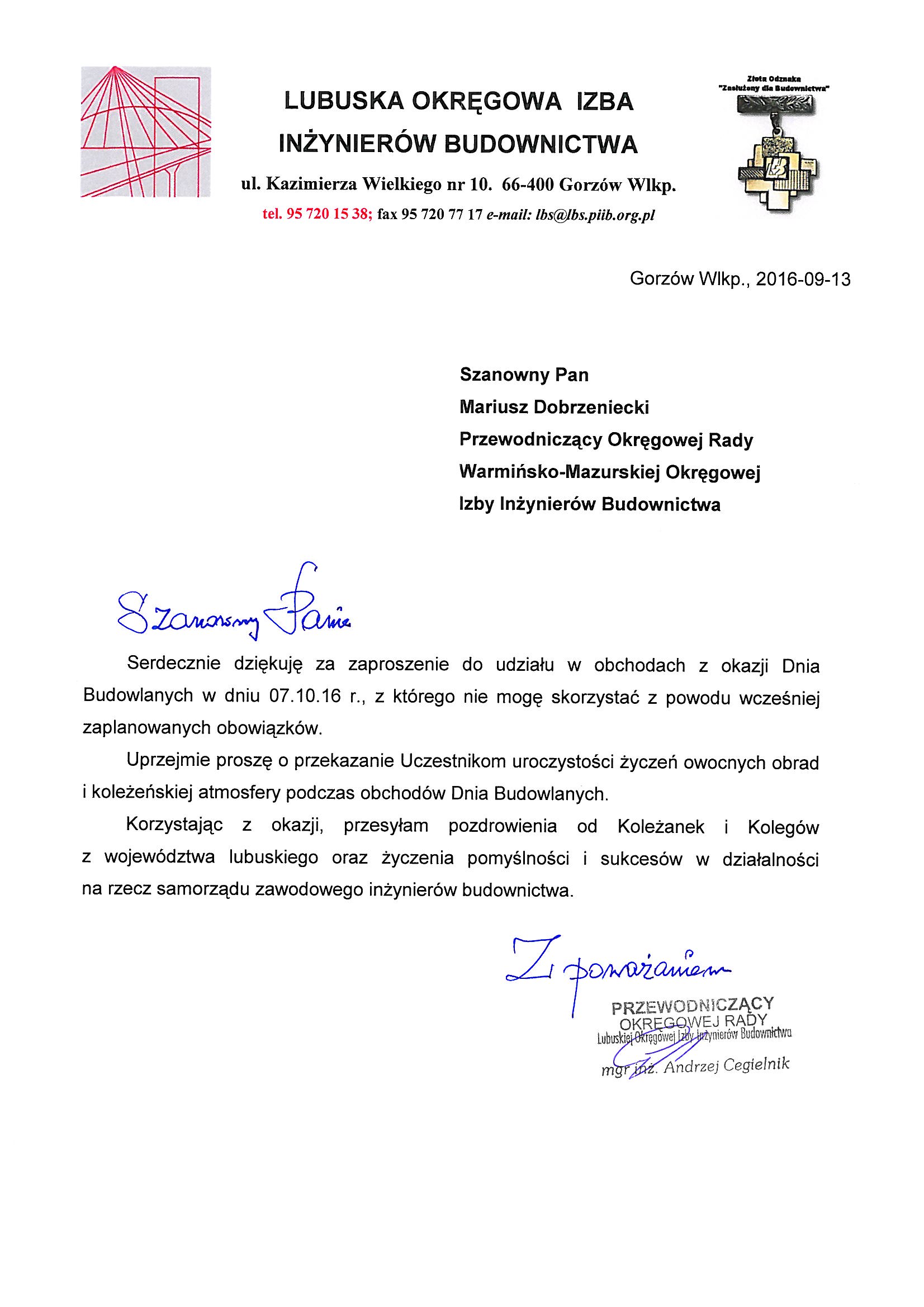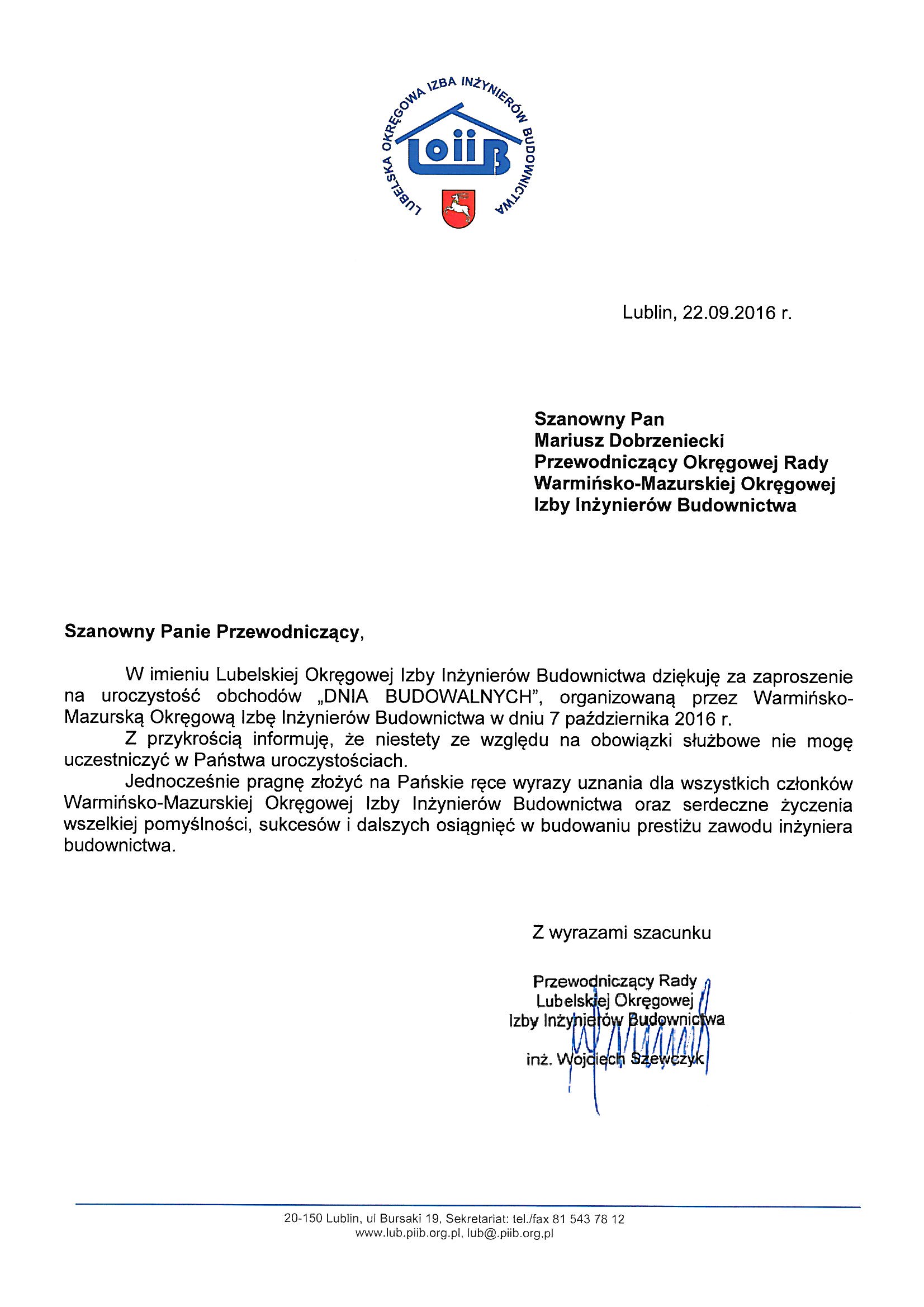 - Roman Lulis – Z-ca Przewodniczącego Rady Mazowieckiej Okręgowej Izby Inżynierów Budownictwa