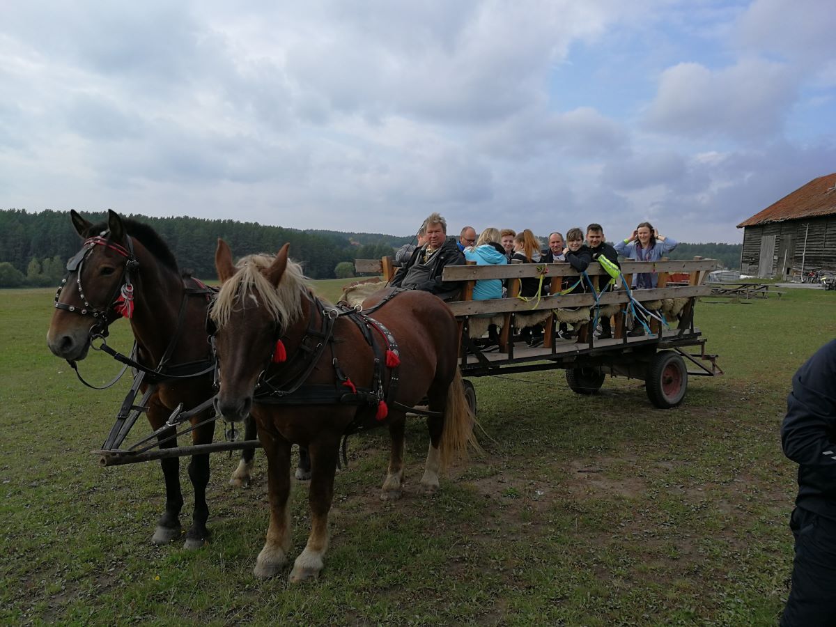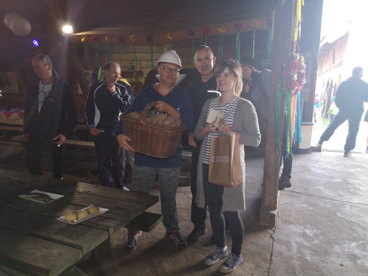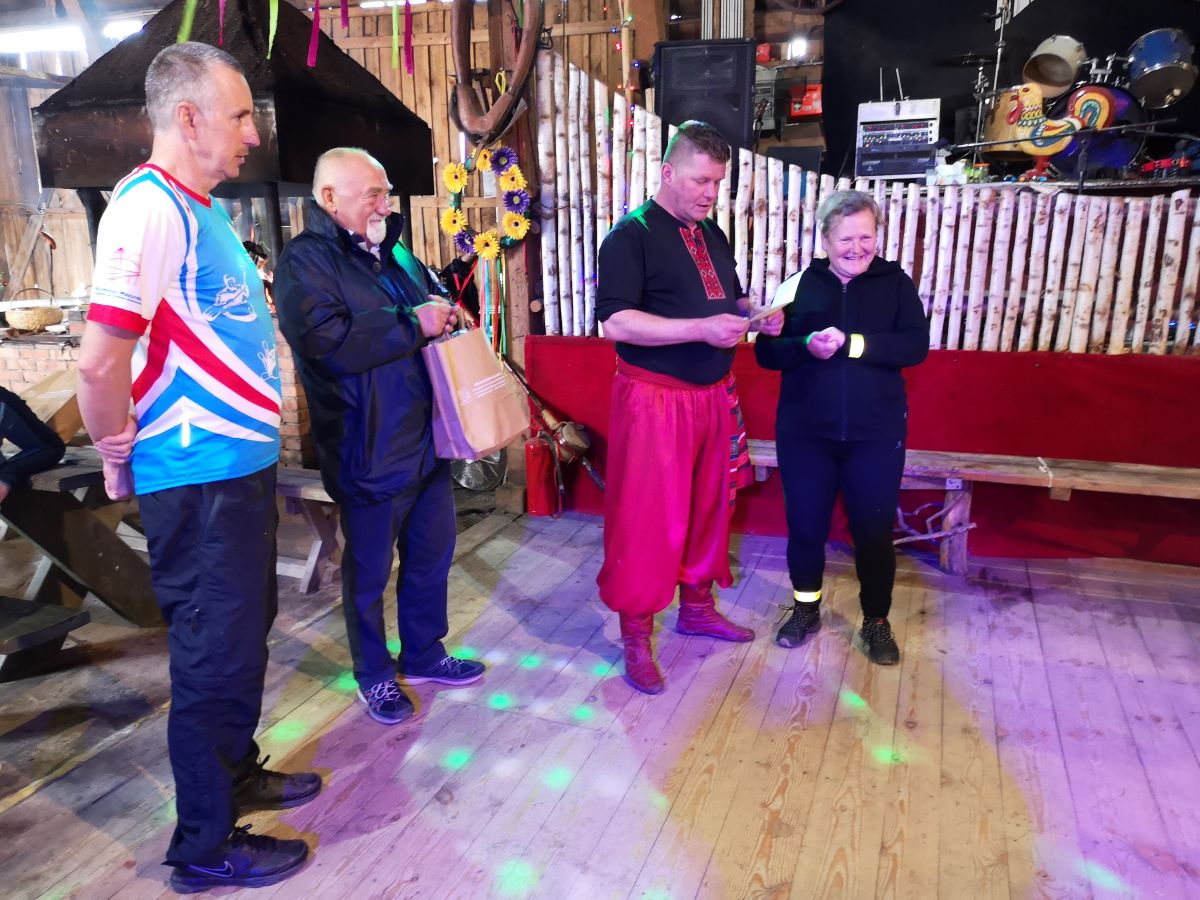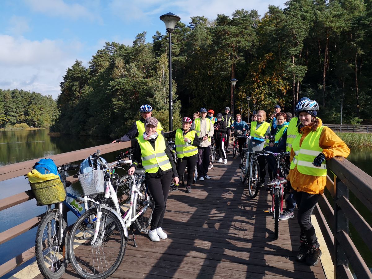 Kolejny rajd rowerowy nie tylko Warmińsko-Mazurskiej Okręgowej Izby Inżynierów Budownictwa, ponieważ mieliśmy zaszczyt zrealizować go wspólnie z przesympatyczną Okręgową Izbą Pielęgniarek i Położnych Regionu Warmii i Mazur z siedzibą w Olsztynie. I właśnie spod siedziby OIPiP rozpoczęliśmy. Otwarcia dokonali Pani Przewodnicząca ORPiP Maria Danielewicz oraz Kol. Sekretarz Rady W-MOIIB Marian Zdunek. Komandor Rowerowy Kol. Dariusz Stecki (Przewodniczący Zespołu ds. organizacji spotkań szkoleniowo-integracyjnych W-MOIIB) i jednocześnie przewodnik wyprawy, poprowadził uczestników szlakiem rowerowym „Łyny”. Po drodze uczestnicy zatrzymywali się przy ciekawych obiektach historycznych, a Kolega Dariusz opowiadał o nich. Nie zabrakło też konkursu na temat wiedzy o naszym mieście, zwycięzców nagrodzono. Po przejechaniu szlaku ok. 12 km spotkanie kontynuowaliśmy w gospodarstwie agroturystycznym Janusza Kojrysa. Nie zabrakło pieczenia kiełbasek i regionalnego jadła. Rozegraliśmy wiele konkursów z nagrodami, w tym rzut podkową czy obieranie ziemniaka, a nagrody te były oryginalne – karnety na naukę jazdy konnej i udział w zabawie „Andrzejkowej” w stodole. W ramach lokalnych atrakcji skorzystaliśmy z przejażdżki wozem oraz z możliwości skoku ułańskiego na konia bez siodła. Dobrą zabawę umilał nam lokalny wodzirej i niewiasty, ubrani w ludowe stroje i wciągający nas w wymyślne tańce, a to wszystko okraszone muzyką płynącą z akordeonu.
