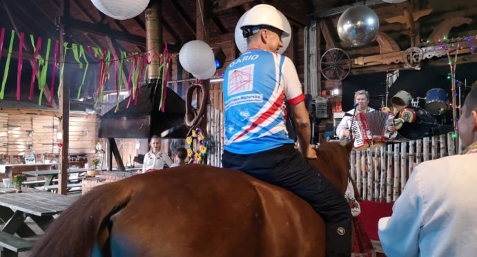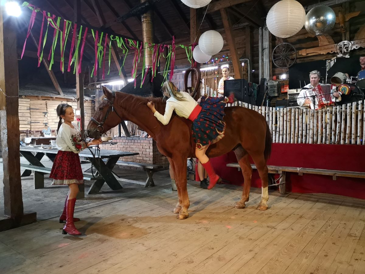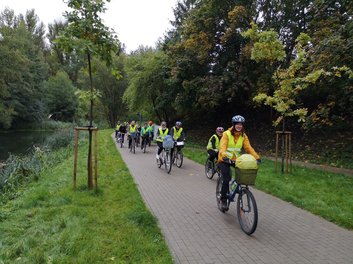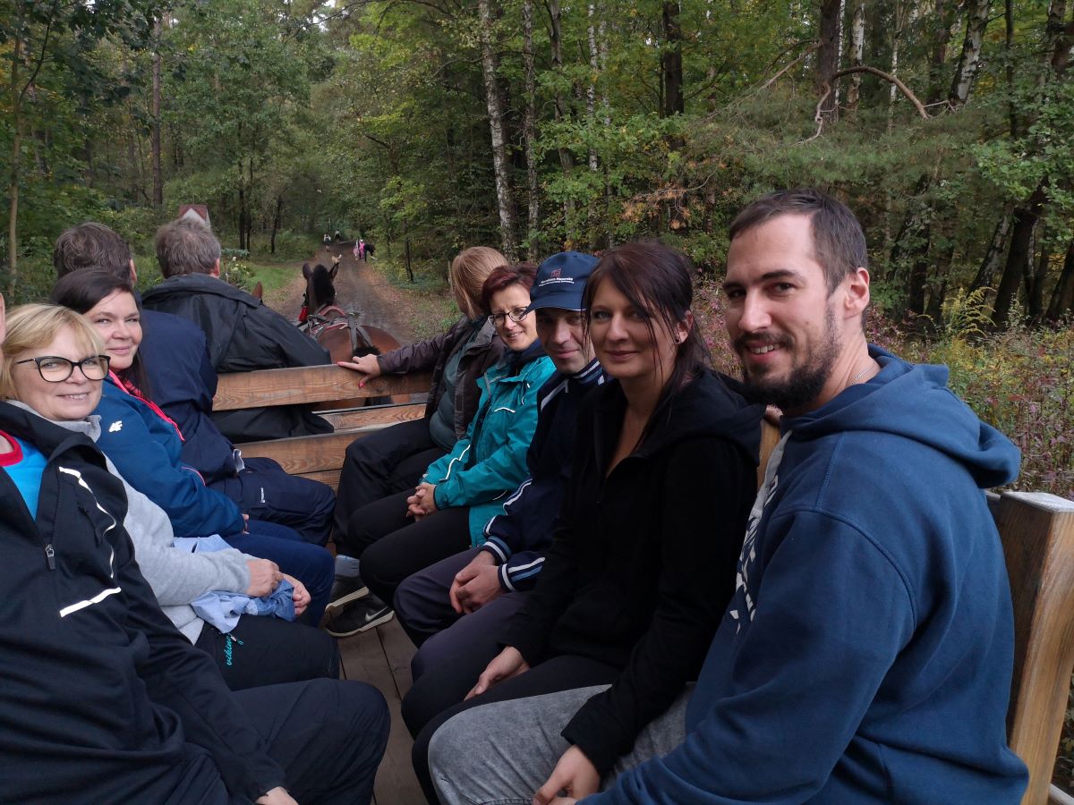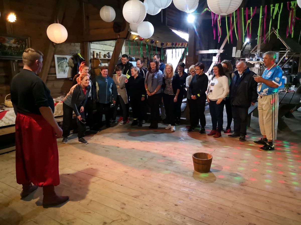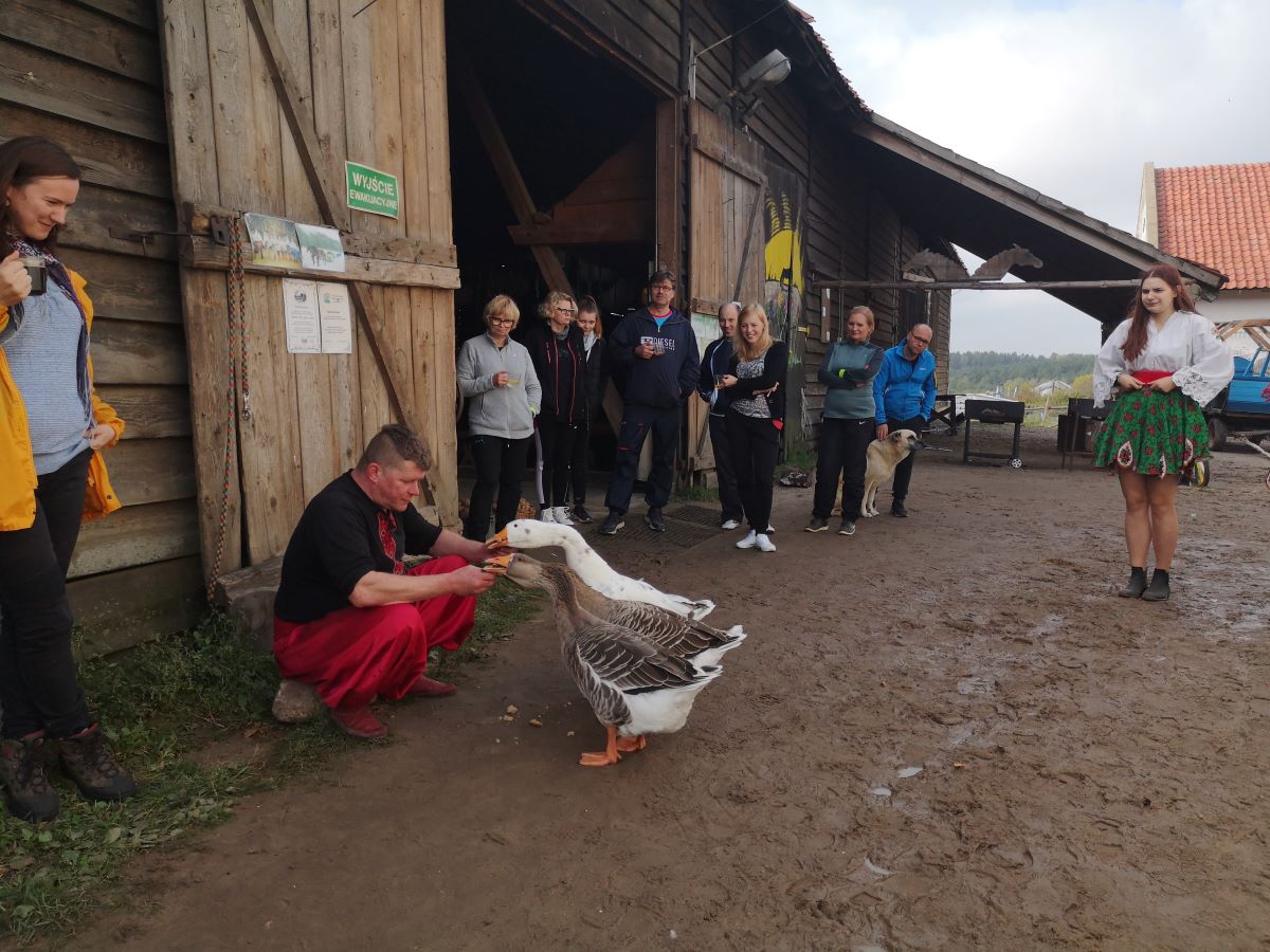 Kolejny rajd rowerowy nie tylko Warmińsko-Mazurskiej Okręgowej Izby Inżynierów Budownictwa, ponieważ mieliśmy zaszczyt zrealizować go wspólnie z przesympatyczną Okręgową Izbą Pielęgniarek i Położnych Regionu Warmii i Mazur z siedzibą w Olsztynie. I właśnie spod siedziby OIPiP rozpoczęliśmy. Otwarcia dokonali Pani Przewodnicząca ORPiP Maria Danielewicz oraz Kol. Sekretarz Rady W-MOIIB Marian Zdunek. Komandor Rowerowy Kol. Dariusz Stecki (Przewodniczący Zespołu ds. organizacji spotkań szkoleniowo-integracyjnych W-MOIIB) i jednocześnie przewodnik wyprawy, poprowadził uczestników szlakiem rowerowym „Łyny”. Po drodze uczestnicy zatrzymywali się przy ciekawych obiektach historycznych, a Kolega Dariusz opowiadał o nich. Nie zabrakło też konkursu na temat wiedzy o naszym mieście, zwycięzców nagrodzono. Po przejechaniu szlaku ok. 12 km spotkanie kontynuowaliśmy w gospodarstwie agroturystycznym Janusza Kojrysa. Nie zabrakło pieczenia kiełbasek i regionalnego jadła. Rozegraliśmy wiele konkursów z nagrodami, w tym rzut podkową czy obieranie ziemniaka, a nagrody te były oryginalne – karnety na naukę jazdy konnej i udział w zabawie „Andrzejkowej” w stodole. W ramach lokalnych atrakcji skorzystaliśmy z przejażdżki wozem oraz z możliwości skoku ułańskiego na konia bez siodła. Dobrą zabawę umilał nam lokalny wodzirej i niewiasty, ubrani w ludowe stroje i wciągający nas w wymyślne tańce, a to wszystko okraszone muzyką płynącą z akordeonu.