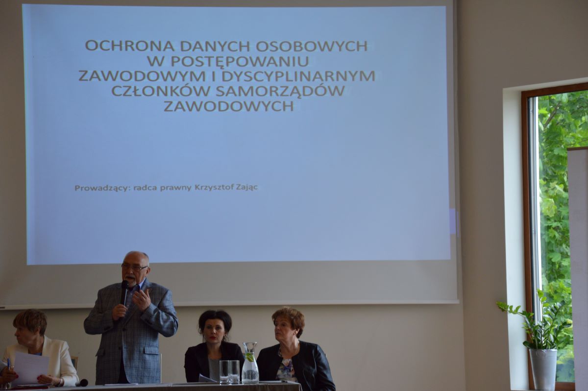 Szkolenie rozpoczął radca prawny Krzysztof Zając tematem: „Ochrona danych osobowych w postępowaniu zawodowym i dyscyplinarnym członków samorządu zawodowego”.
