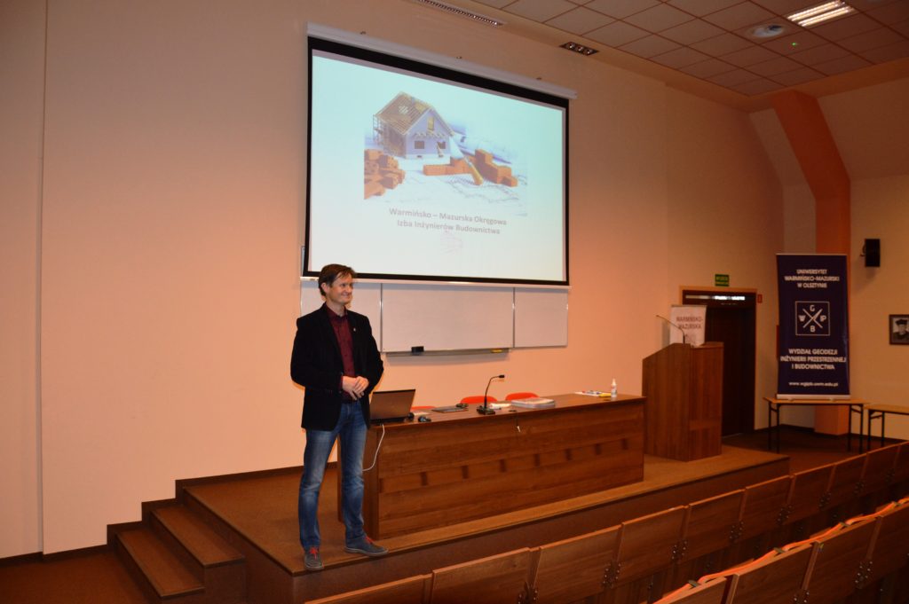 W dniu 07 grudnia 2018r. po raz kolejny cyklicznie Warmińsko-Mazurska Okręgowa Izba Inżynierów Budownictwa uczestniczyła w spotkaniu ze studentami III roku na Kierunku: Budownictwo Wydziału Geodezji, Inżynierii Przestrzennej i Budownictwa.