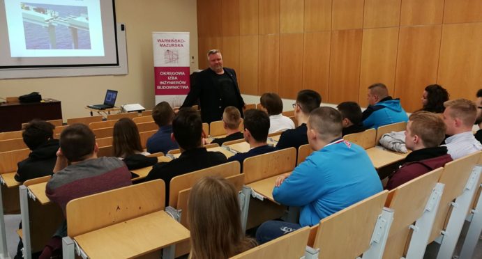 W dniu 14 maja 2019r. w sali konferencyjnej Laboratorium Drogowego Instytutu Budownictwa na Wydziale Geodezji, Inżynierii Przestrzennej i Budownictwa Uniwersytetu Warmińsko-Mazurskiego odbyło się spotkanie przedstawicieli Warmińsko-Mazurskiej Okręgowej Izby Inżynierów Budownictwa ze studentami kierunków budowlanych. Spotkanie odbyło się w ramach działania powołanego przez Radę W-MOIIB Zespołu ds. Promocji Zawodu Inżyniera Budownictwa wśród Studentów, do zadań którego należy m.in.: