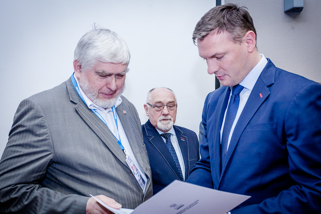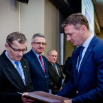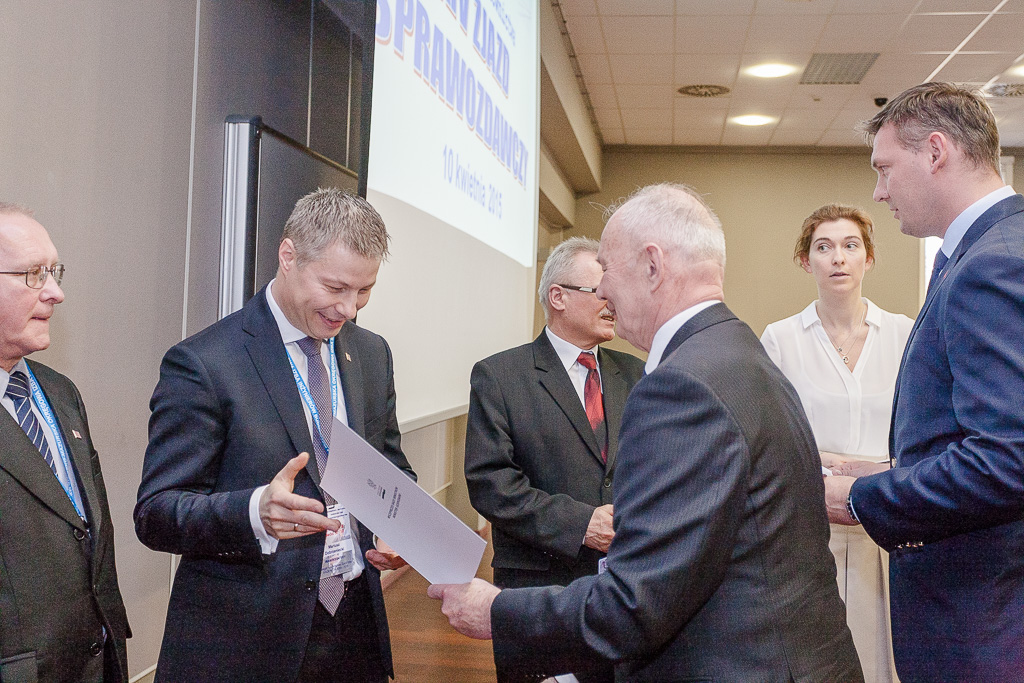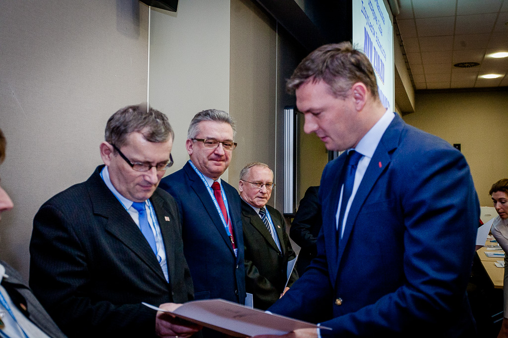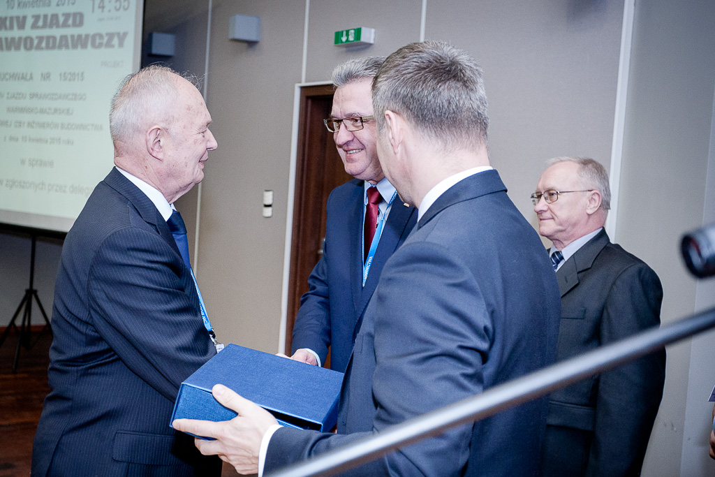 Wręczenia Dyplomów dokonali: Poseł na Sejm RP – Pan Paweł Papke, Dyrektor Wydziału Infrastruktury i Geodezji Warmińsko – Mazurskiego Urzędu Wojewódzkiego w Olsztynie reprezentujący Wojewodę Warmińsko – Mazurskiego – Pan Jerzy Szczepanik oraz Prezes Krajowej Rady Polskiej Izby Inżynierów Budownictwa – Pan Andrzej Roch Dobrucki.