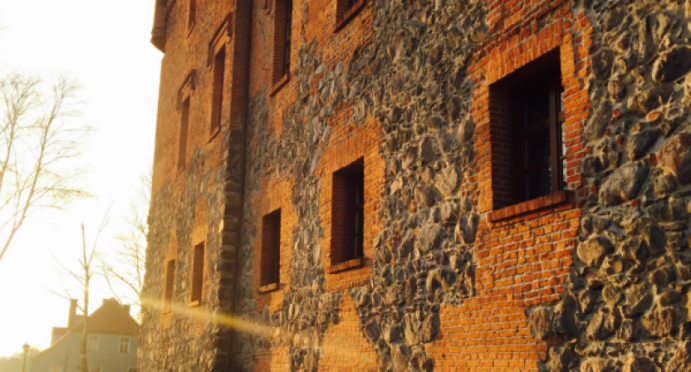 Najstarsze informacje o krzyżackim zamku, który dał początek osadzie i późniejszemu miastu, pochodzą z kroniki Wiganda z Marburga z 1377 roku. Pierwszą fazę budowy wskazuje się na lata drugiej dekady XIV wieku do 1376 roku. Druga faza budowy rozpoczyna się w 1377 roku od założenia murów obwodowych zamku, na rzucie prostokąta o wymiarach 44 x 52 metry, z potężnym przedzamczem.
