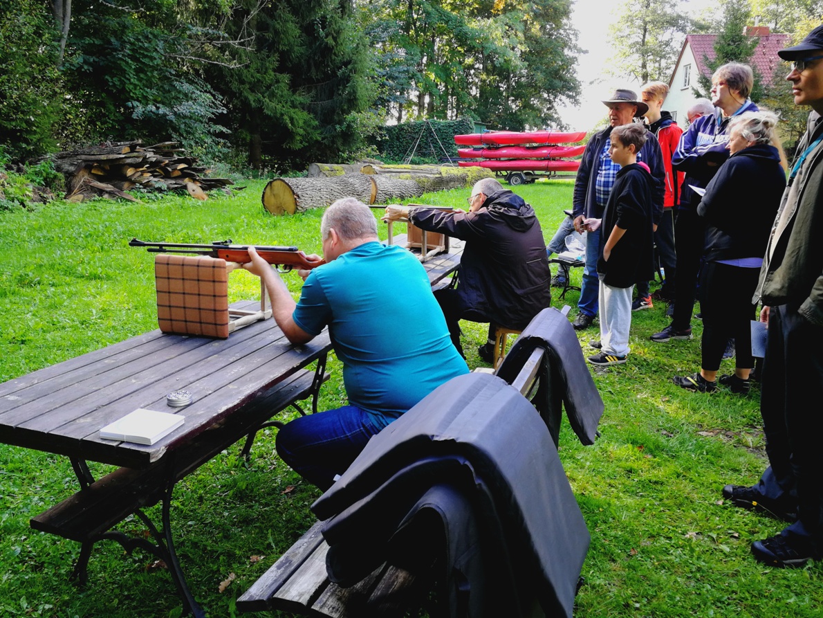 W dniu 15.09.18r. odbył się X Spływ kajakowy W-MOIIB. Uczestnicy spływu zakwaterowali się w klimatycznym miejscu już po raz drugi w Stanicy Wodnej Mazury PTTK w Sorkwitach k/ Mrągowa. Spływ odbył się na rzece Krutyni na 13 km trasie od miejscowości Krutyń do m. Ukta, chociaż plan zakładał jeszcze 7 km odcinek z Ukty do Nowego Mostu ale na wysokości Ukty spadł deszczyk, który pokrzyżował nam plany i to właśnie w Ukcie zakończyliśmy tę część spotkania. Po obiedzie i krótkim czasie wolnym ok. godziny 19.00 spotkaliśmy się pod dużym namiotem, gdzie przy użyciu sprzętu audio-wizualnego powspominaliśmy 5 lat (9 spływów kajakowych). Łezka zakręciła się w oku. Na koniec prezentacji odbył się Konkurs (Quiz) z wiedzy o elementach charakterystycznych poszczególnych spływów. Zwyciężczyni otrzymała podarunek – nagrodę. Po godzinie wspomnień przenieśliśmy się w kierunku ogniska z skąd dobiegały gitarowo-bębenkowe dźwięki szantowo-biesiadnej muzyki i czekał na nas pyszny bigosik i pyszny smalczyk, nie zabrakło też kiełbasek i kiszonych ogórków. Biesiada trwała do późna. Rankiem po gustownym śniadanku odbył się turniej strzelecki przeprowadzony z broni pneumatycznej w kalibrach 4,5 i 5,5 mm. Rywalizacja była zacięta. Zwycięzcy otrzymali symboliczne nagrody. Dziękujemy uczestnikom za stworzenie miłej przyjacielskiej atmosfery. To cieszy i serce się raduje jak widzimy, że ludzie potrafią dobrze spędzać ze sobą czas i zacieśniać dobre kontakty. Do zobaczenia na kolejnych spotkaniach.